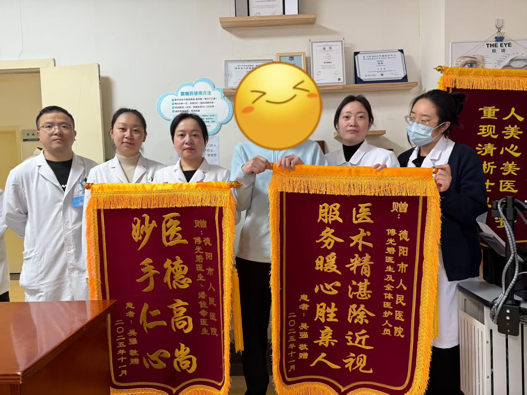 另一面錦旗則寫(xiě)道:“醫(yī)術(shù)精湛除近視,服務(wù)暖心勝親人”,表達(dá)出吳先生對(duì)傅光碧醫(yī)生及視光中心團(tuán)隊(duì)專業(yè)診療與暖心服務(wù)的由衷贊譽(yù)。從術(shù)前咨詢到術(shù)后護(hù)理,整個(gè)團(tuán)隊(duì)始終以細(xì)致入微的態(tài)度,為他提供了如家人般的支持與關(guān)懷。