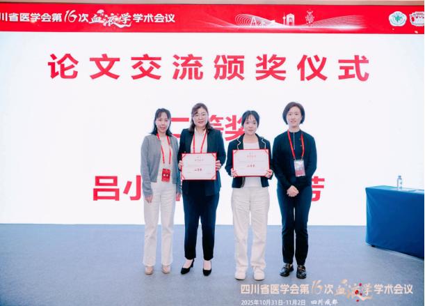 2025年10月31日至11月1日,四川省醫(yī)學(xué)會(huì)第十六次血液學(xué)學(xué)術(shù)會(huì)議在成都召開。我科呂小春論文《急性白血病患者癌因性疲乏運(yùn)動(dòng)指導(dǎo)方案的構(gòu)建及效果評(píng)價(jià)》參加大會(huì)發(fā)言。本次大會(huì)護(hù)理論文投稿100余篇,其中9篇論文參加大會(huì)發(fā)言,經(jīng)過與華西醫(yī)院、西部戰(zhàn)區(qū)總醫(yī)院、川北醫(yī)學(xué)院附屬醫(yī)院、成都醫(yī)學(xué)院附屬醫(yī)院、綿陽中心醫(yī)院護(hù)理同仁同臺(tái)競(jìng)技,榮獲大會(huì)發(fā)言二等獎(jiǎng)(僅次于四川大學(xué)華西醫(yī)院)。