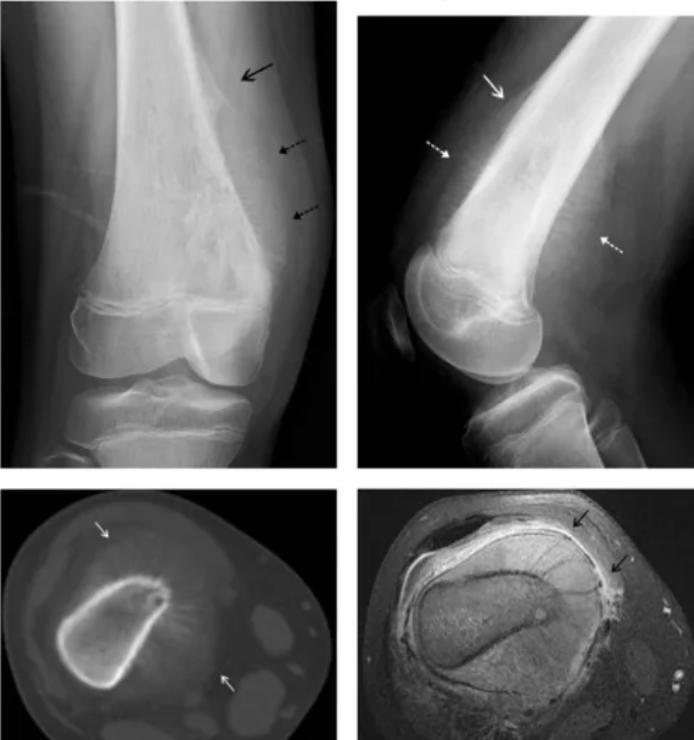 檢查結(jié)果:生長(zhǎng)痛各項(xiàng)檢查通常無(wú)異常;骨肉瘤通過(guò)影像學(xué)檢查(如X線、CT、MRI等)可發(fā)現(xiàn)骨質(zhì)破壞、瘤骨形成等異常表現(xiàn)。