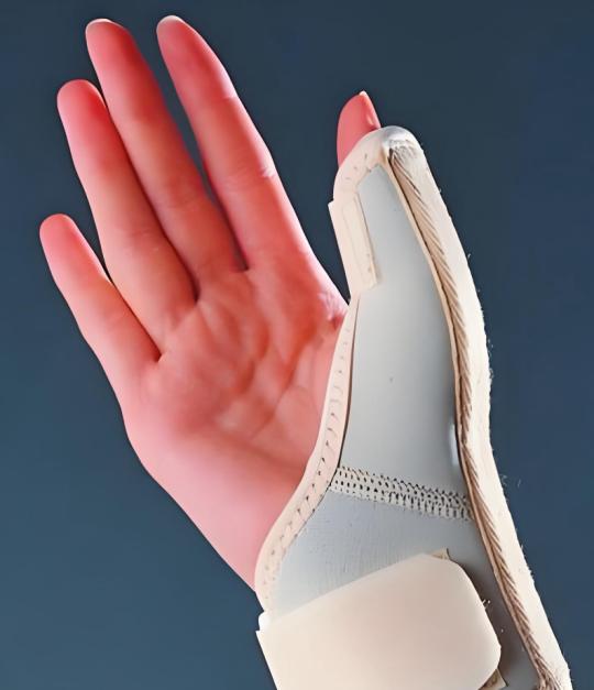 4.佩戴支具:將拇指固定在休息位,同時限制腕關(guān)節(jié)活動,讓有炎癥的肌腱充分休息。因該病具有晨起加重的特點,因此建議夜間睡覺和進(jìn)行必要活動時堅持佩戴。
