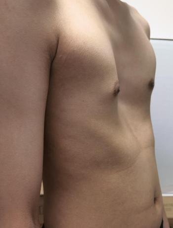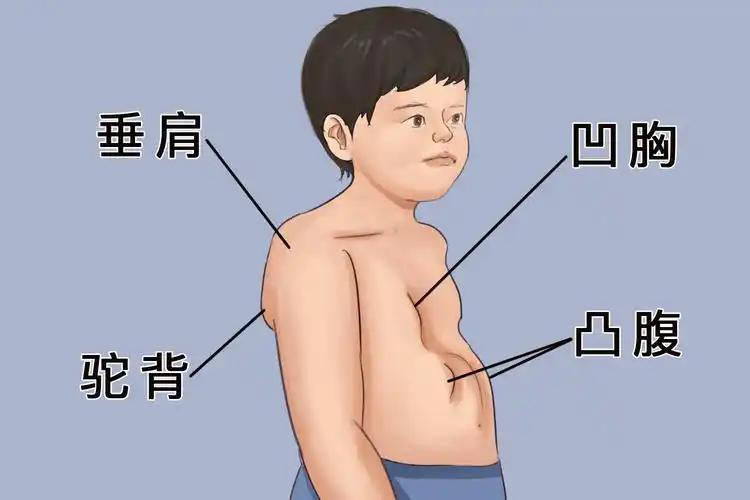 漏斗胸典型體型表現(xiàn)為:身體瘦長、前胸凹、后背弓、雙肩收、腹膨隆,且隨著年齡的增長,癥狀會(huì)逐漸加重。