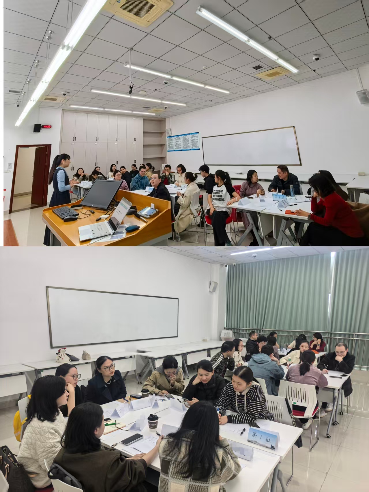 工作坊著力推動(dòng)教師實(shí)現(xiàn)從“理論課思維”到“小講課思維”的根本轉(zhuǎn)變,明確指出小講課并非理論課的簡(jiǎn)單壓縮,而是以解決具體臨床問(wèn)題為核心的精準(zhǔn)教學(xué)重構(gòu)。在這一理念指引下,工作坊系統(tǒng)引入了BOPPPS有效教學(xué)模式(導(dǎo)入-目標(biāo)-前測(cè)-參與式學(xué)習(xí)-后測(cè)-總結(jié)),為“如何教”提供了清晰的實(shí)踐路徑。秦老師圍繞教學(xué)目標(biāo)設(shè)定、參與式學(xué)習(xí)技巧等關(guān)鍵環(huán)節(jié)進(jìn)行了細(xì)致講解。隨后,24名教師分為三個(gè)小組,圍繞真實(shí)臨床選題,結(jié)合BOPPPS六大模塊展開(kāi)了深入研討、教案書(shū)寫(xiě)與成果分享,現(xiàn)場(chǎng)研討氣氛熱烈,實(shí)現(xiàn)了從理論到實(shí)踐的深度融合。所有參與工作坊的教師均現(xiàn)場(chǎng)完成了一份包含完整BOPPPS流程的《小講課》教案,可直接應(yīng)用于后續(xù)臨床教學(xué)。這種“既學(xué)到方法論,又帶走實(shí)成果”的培訓(xùn)模式,有效激發(fā)了臨床教師們投身教學(xué)改革的內(nèi)在動(dòng)力,讓大家對(duì)教學(xué)產(chǎn)生了新的熱情與信心。