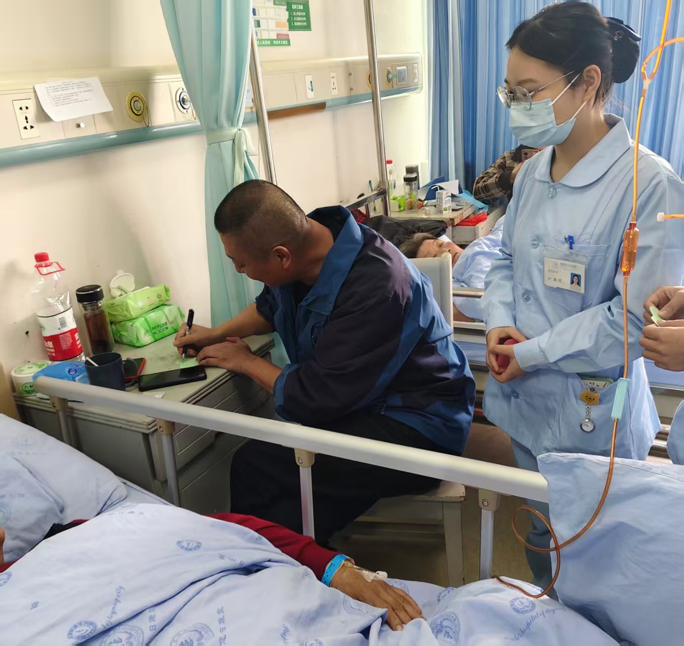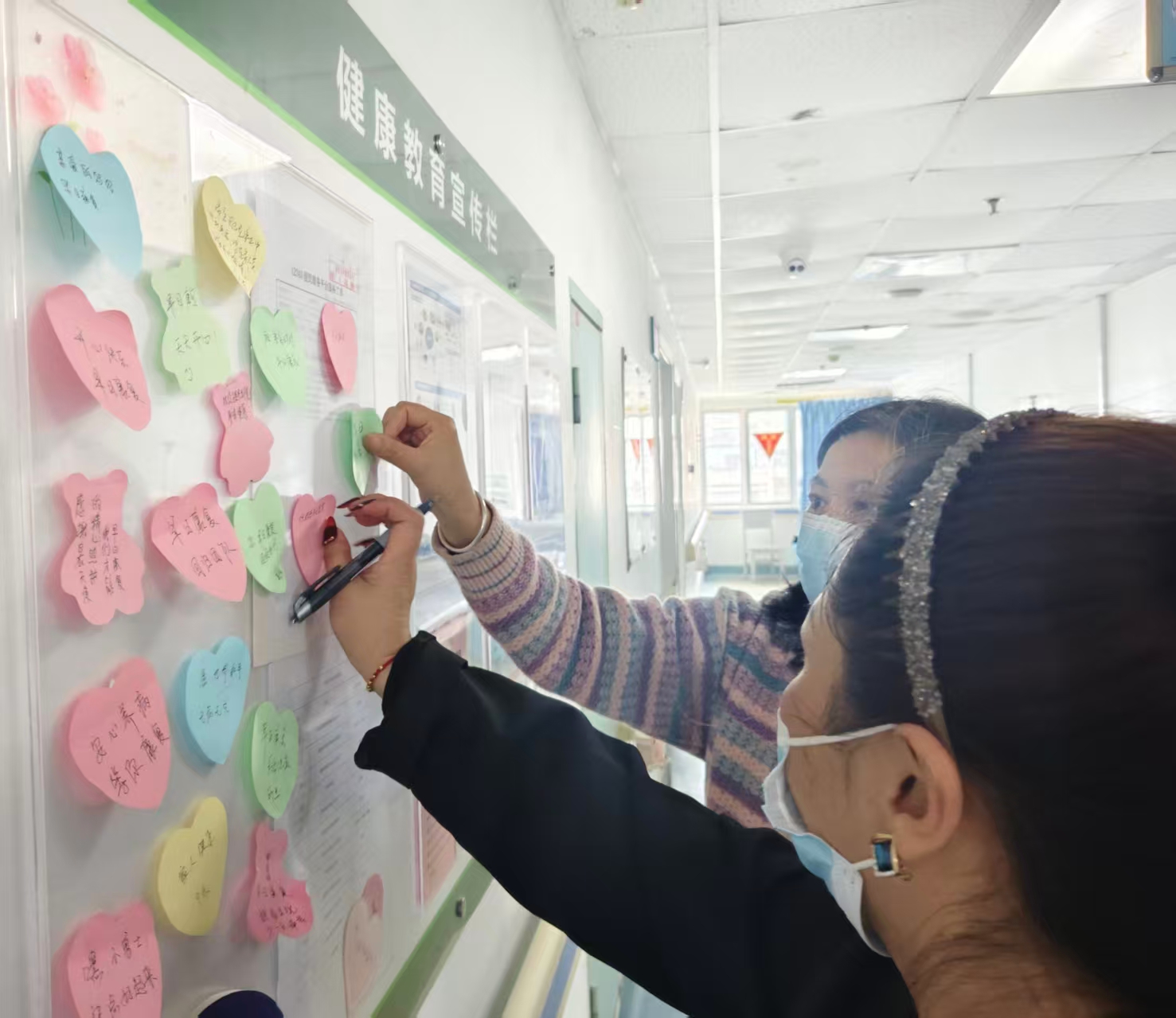 在老師的帶領下,我和幾位實習同學一起策劃了這場名為“接住心愿”的特別活動。五彩的心愿貼和細長的筆在我們手中傳遞,不一會兒,病房走廊上就立起了一面“秋日心愿墻”。我們輕聲對每一位病人和家屬說:“重陽安康,要不要把您的心愿寫在紙上,讓我們成為那個接住您心愿的人。”我們走進病房,昨天剛做完手術的張奶奶精神好了許多,正靠在床頭和女兒輕聲聊著天。我們遞上心形心愿貼,熱情地邀請:“張奶奶,今天重陽節(jié),要不要寫個心愿呀?”“來,我?guī)蛬寢寣懀?rdquo;她的女兒主動接過紙條,低頭認真寫下:“親愛的媽媽,早日康復。”話音落下,張奶奶笑得眼角的皺紋都舒展開來。那一刻,我忽然有些動容——不知從什么時候開始,我們越來越羞于直接表達愛意,特別是對最親的人。而這一句簡單的話,卻像一縷陽光,照進了每個人的心里,連病房的空氣都變得柔軟起來。家屬把心愿貼鄭重地貼在心愿墻上,仔細看著墻上其他人的心愿,輕聲說:“希望這些愿望,都能實現。”早日康復,多么平常的一句話,卻是病房里最真摯的期盼。這一刻我深深體會到,護理的真諦不僅在于技術的精湛,更在于共情與陪伴。這面小小的心愿墻,早已超越了節(jié)日的儀式感,它讓那些藏在心底的祝福,變成了看得見的溫暖。我站在心愿墻前,看著被我們稱為“小太陽”的心愿貼,它真的成了一座橋——一頭連著病痛與不安,一頭通向希望與溫暖。